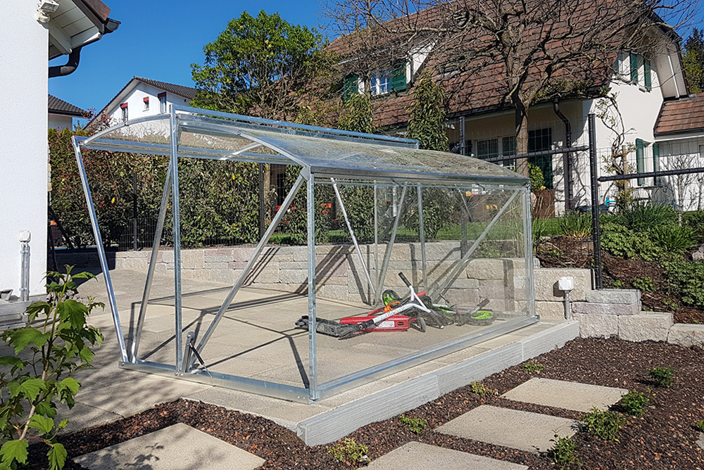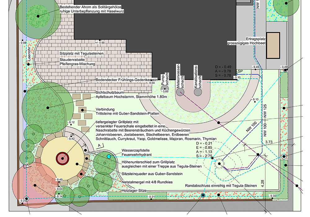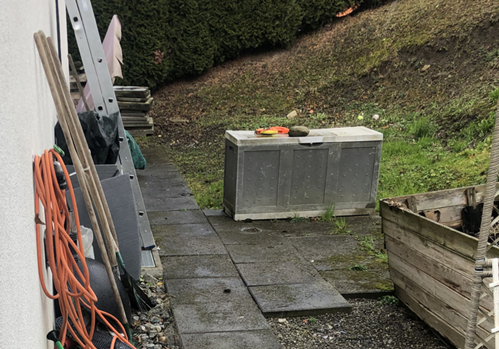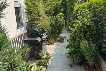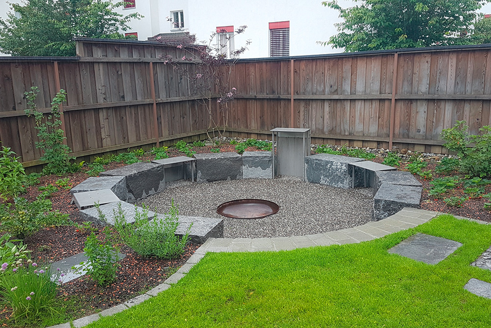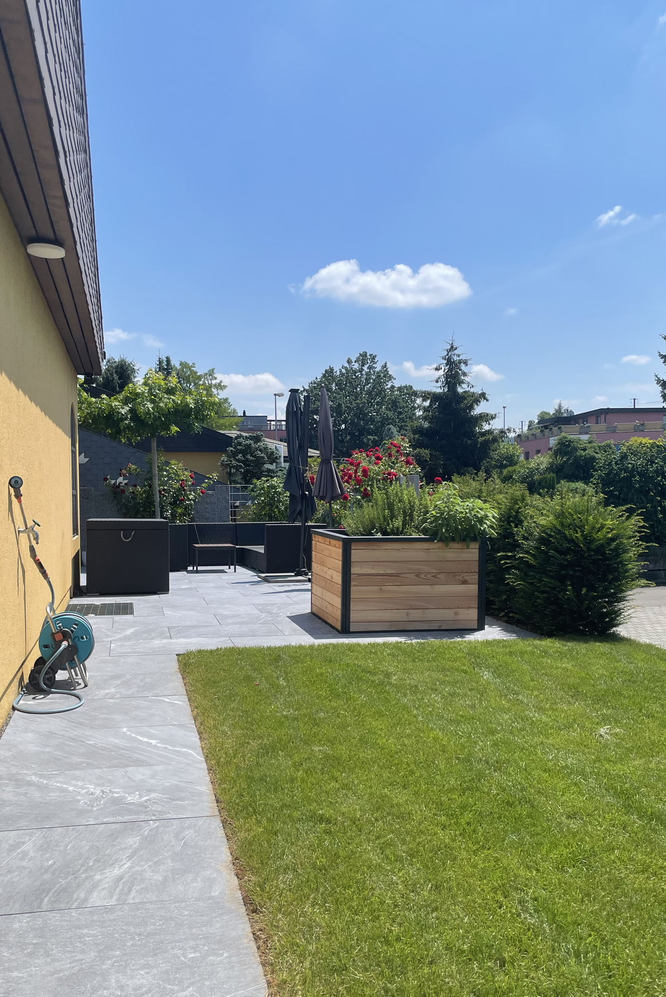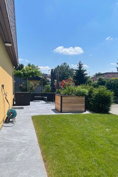 Gartenumgestaltung mit Grillplatz und Velounterstand