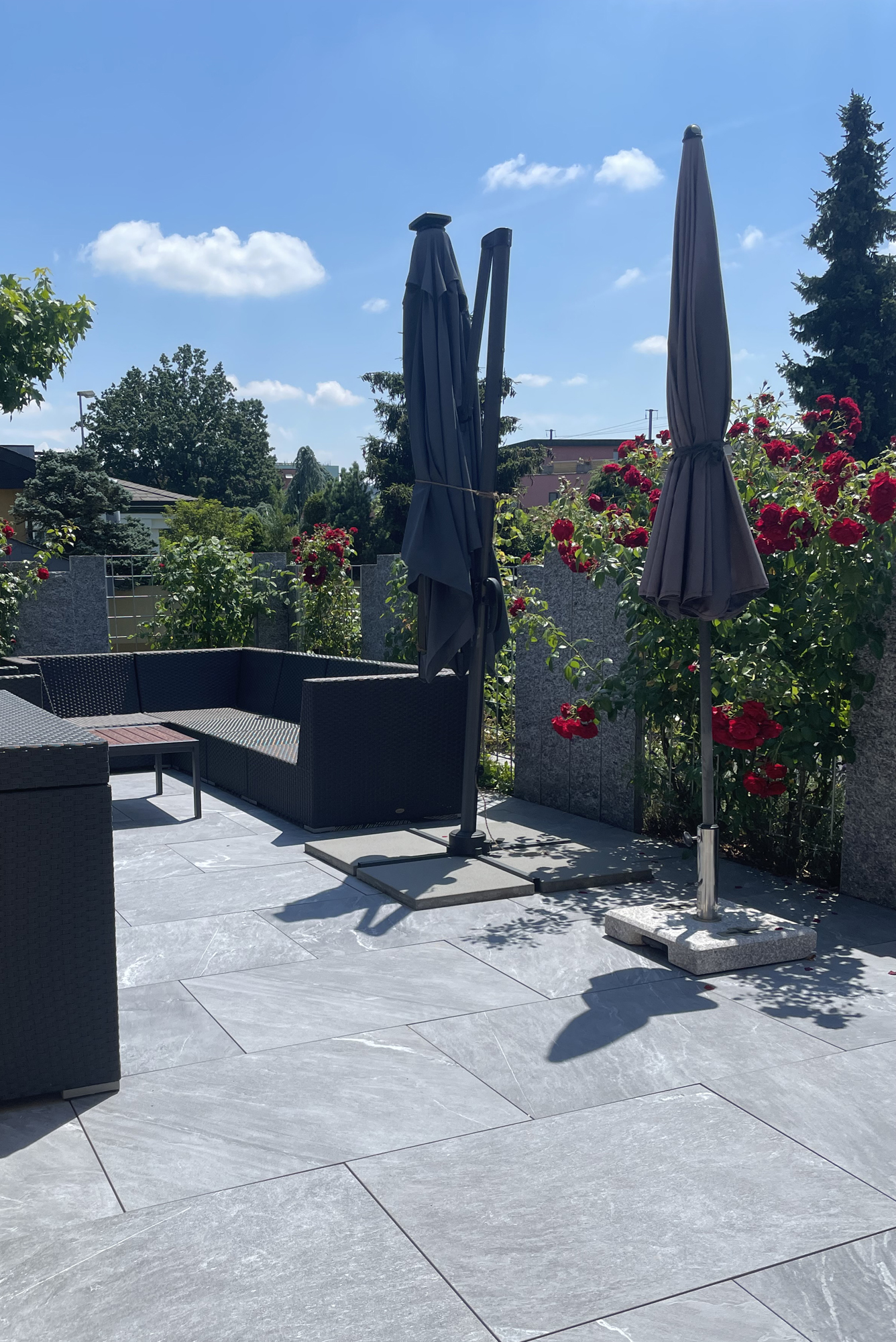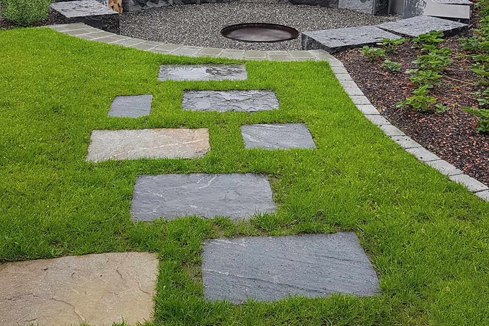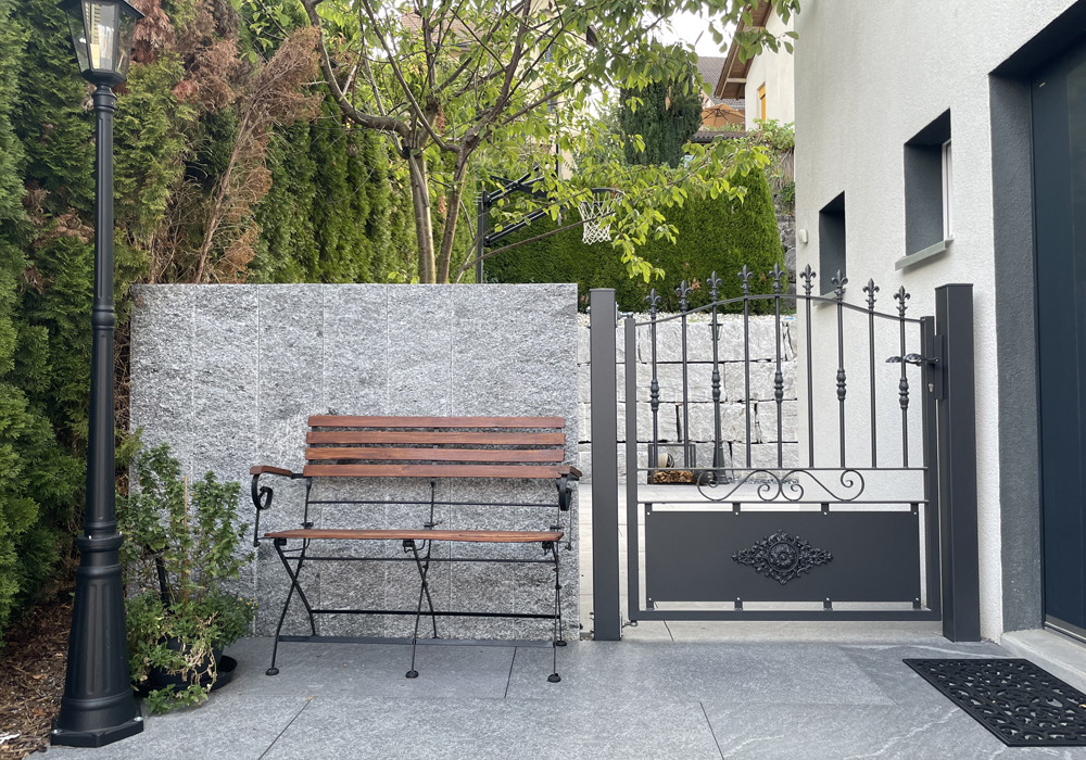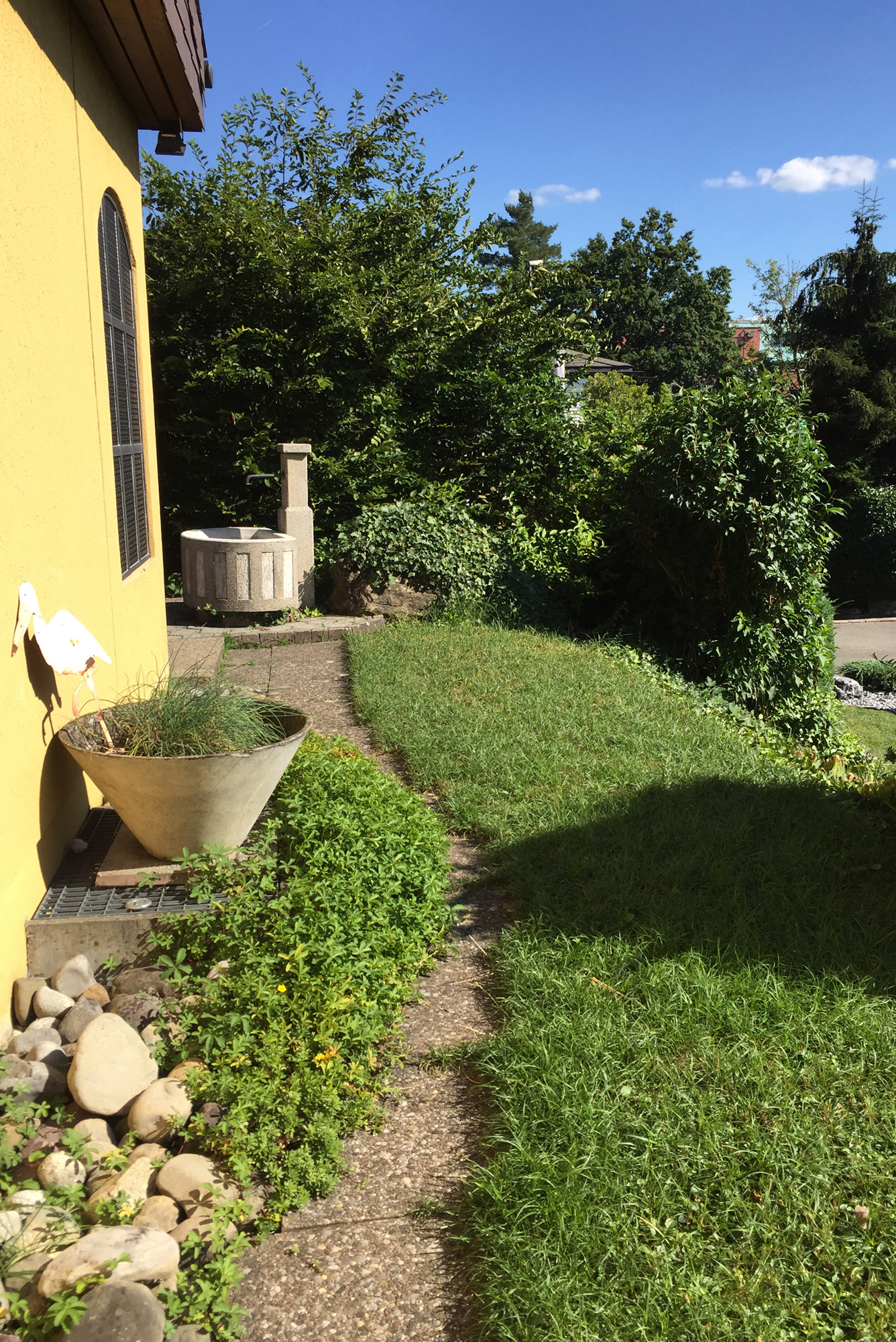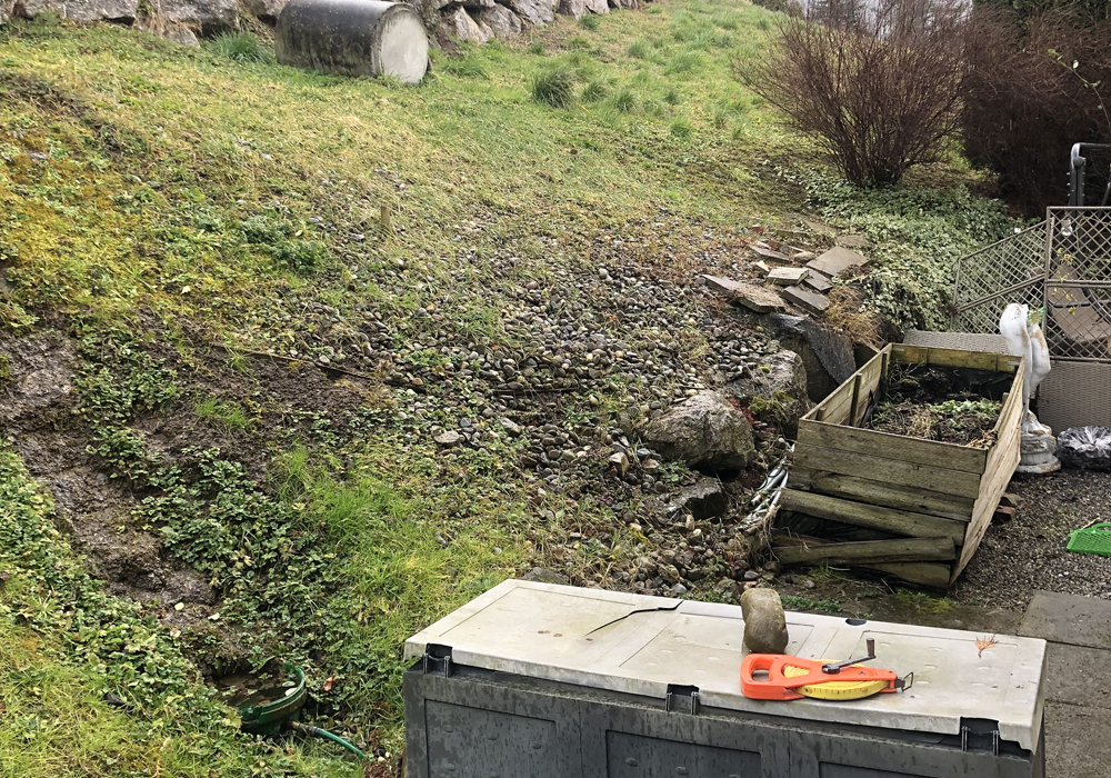 Gartenumgestaltung mit Grillplatz und Velounterstand