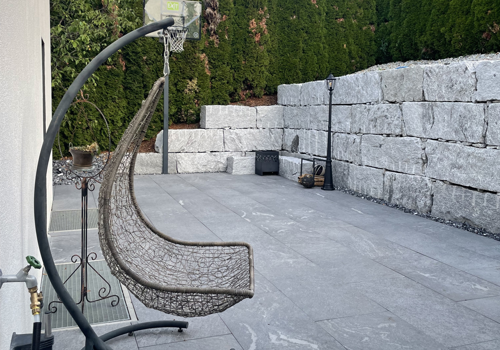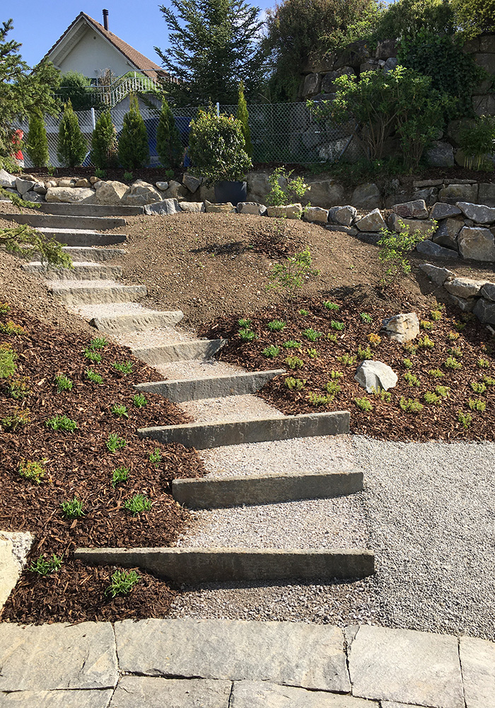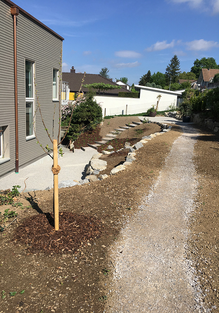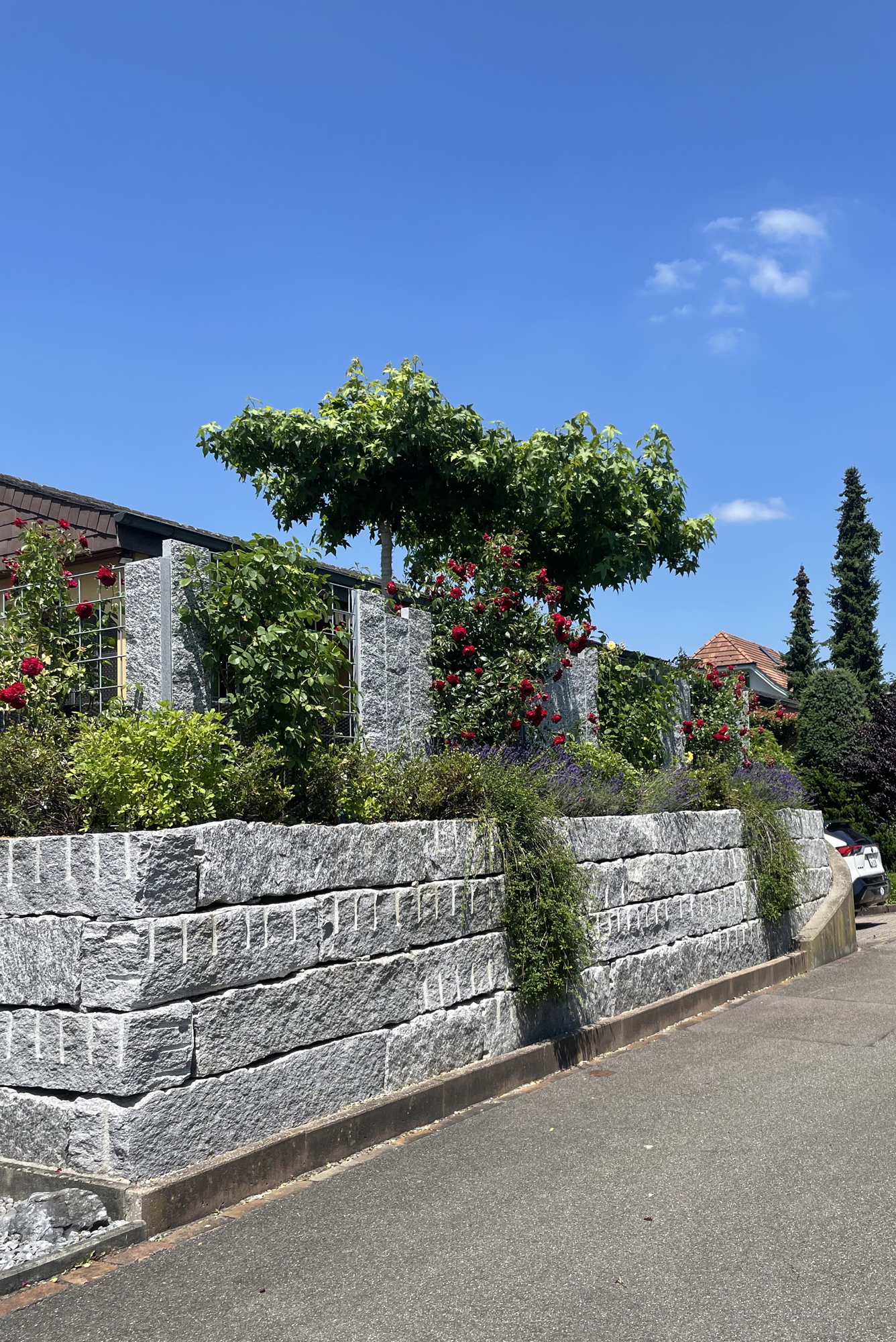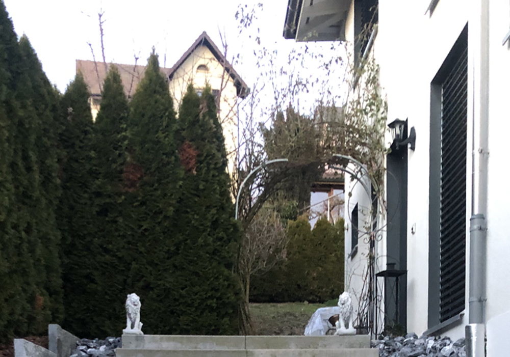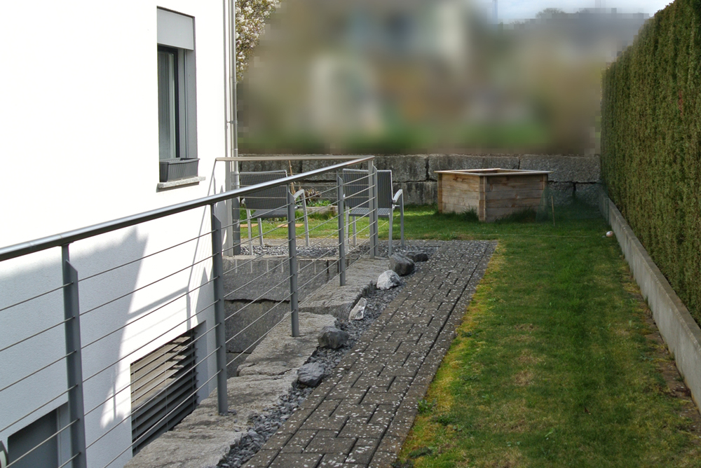 Gartenumgestaltung mit Stützmauer und Sichtschutz