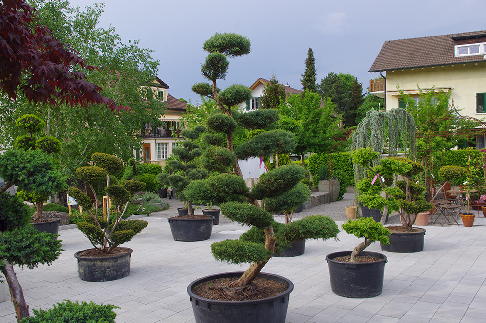 Wer seinem Garten einen exklusiven Touch geben will, ist mit edlen Formgehölzen sehr gut bedient. Für die auch als Gartenbonsais bezeichneten Formgehölze eignen sich Eiben (Taxus), Föhren (Pinus) oder Stechpalmen (Ilex) besonders gut. Ob ausgepflanzt oder in Grossgefässen präsentiert, der absolute Blickfang mit Formgehölzen entsteht, wenn sie an übersichtlicher Stelle in Einzelstellung platziert werden.