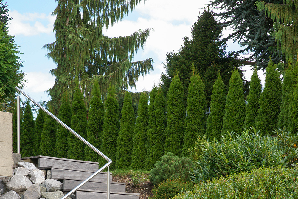 Ob Koreatanne, serbische Fichten, orientalische oder abendländische Lebensbäume, Zedern aus dem Himalaja und wie sie alle heissen – viele Nadelgehölze wirken im Garten wie lebendige Skulpturen. Sie wachsen oft sehr dicht, sind grossmehrheitlich immergrün und setzen damit auch im Winter Akzente, während die laubabwerfenden Gehölze in dieser Zeit nicht nur kahl wirken, sondern auch keinen Sichtschutz mehr bieten. Der gekonnte Einsatz von immergrünen Koniferen im Kontrast zu den lebendigeren Laubgehölzen erzeugt die gewünschte Spannung im Garten.