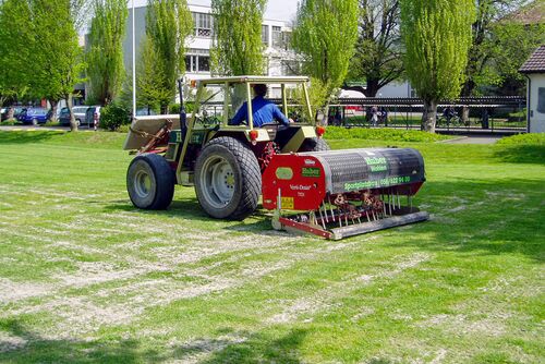 - die anschliessende Nachsaat optimiert die Rasenmischung